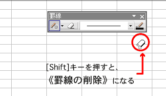 3 1の状態から[Shift]キーを押すと《罫線の削除》になる。 |